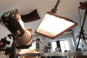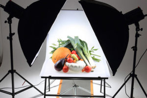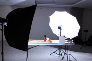 Set de iluminação montado na empresa contratante para fotografia de culinária.